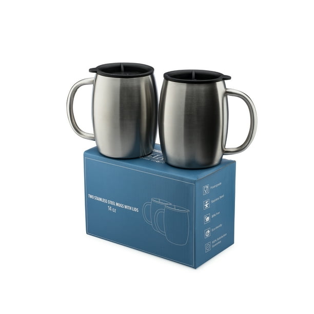 Stainless Steel Insulated Coffee Mugs With Lids Set Of 2 14 Oz Double Walled Perfect For Travel Walmart Com