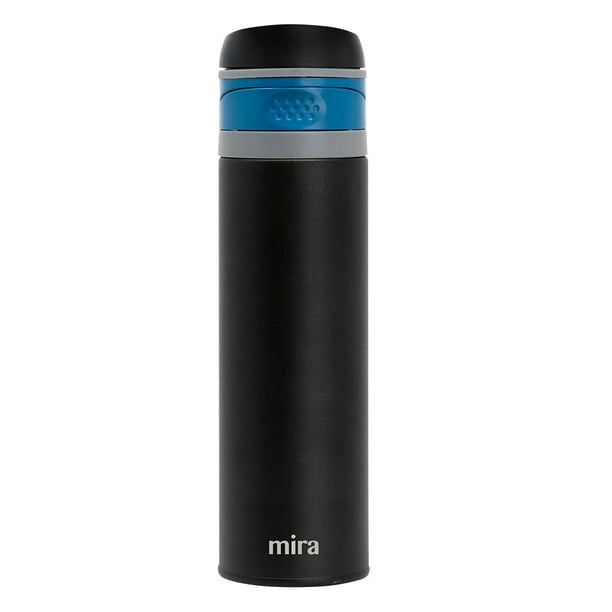 Mira 16 Oz Stainless Steel Insulated Coffee Tea Travel Mug One Touch Lid Tumbler Black Walmart Com